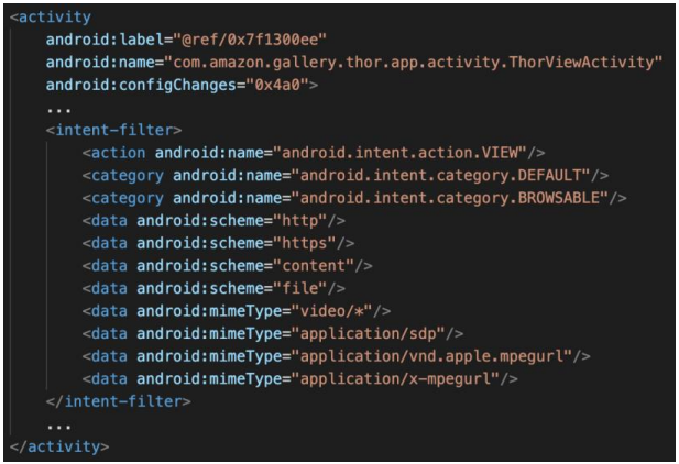 漏洞利用有漏洞的漏洞组件为com.amazon.gallery.thor.app.activity.ThorViewActivity,该组件启动后会触发一个包含由用户token的header的HTTP请求。