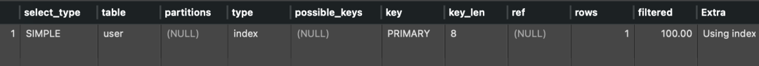 首先,key字段一定不能是NULL,必须有具体的值;其次,type字段应该是ref、eq_ref、range、const等之一;另外,extra字段如果是NULL,或者是"using index"、"using index condition"都是符合条件的情况。