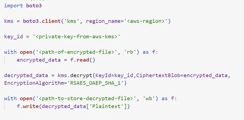 kms_client = boto3.client(kms, region_name=region_name):为指定的AWS区域初始化KMS客户端对象。