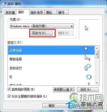 4、修改所有的指针状态成功后,用户需点击“另存为”按钮以另存为本次修改,下次可以直接使用,无需重新设置。