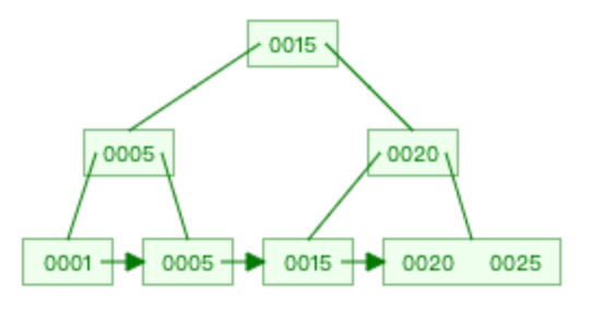 现在有一颗这样的 B+ 树,可以看到叶子节点的索引值是从小到大的顺序。