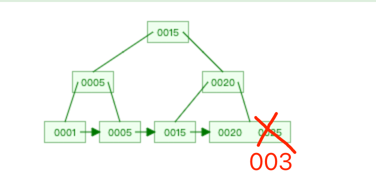 解决的方法就是,先删除索引值为 25 的节点,再插入索引值为 3 的节点,这样,这颗 B+ 树才能满足顺序性。