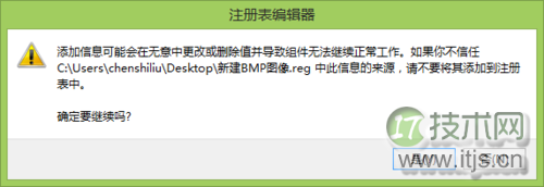 4、新建像双击此文件,IT技术网快捷会有一个提醒,单击是,即可添加右键菜单中的新建>新建BMP图像。