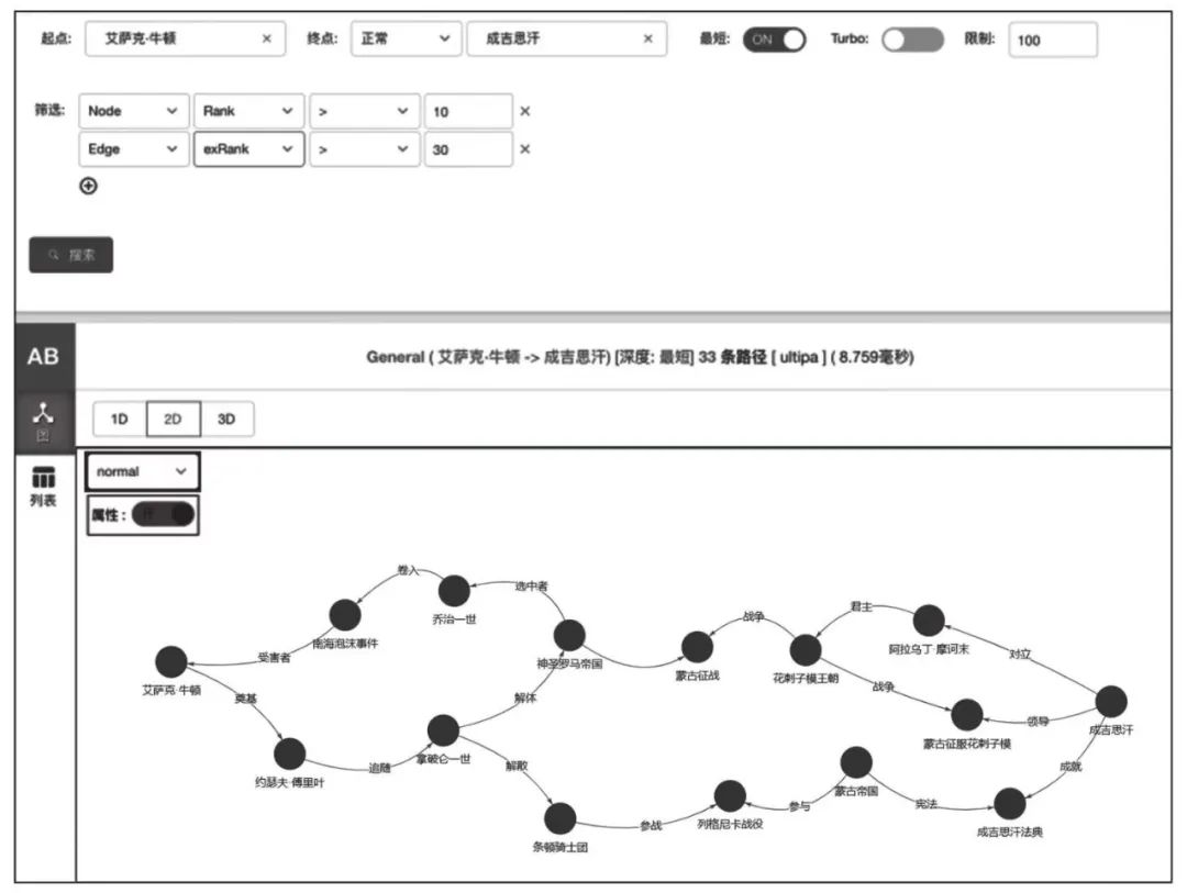 ▲图1 实时搜索最短路径:从牛顿到成吉思汗(表单模式)
