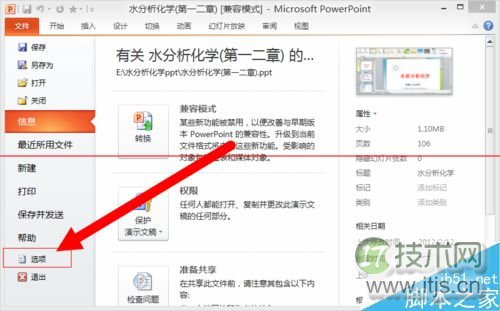 2、打开ppt,点击左上方文件菜单中的[选项]