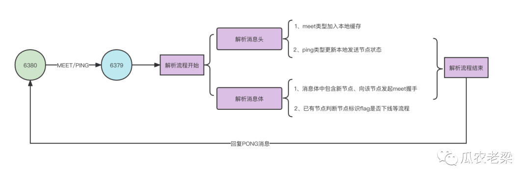 两个节点之间发送MEET/PING消息,回复PONG消息的流程如下。