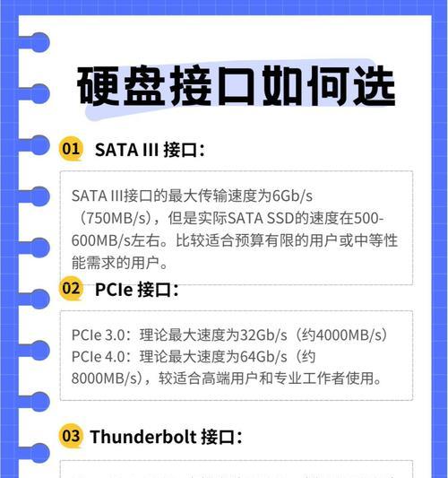 硬盘接口类型和速度对数据传输速度有重要影响。本段将详细介绍常见的接口类型(如SATA和NVMe)以及它们之间的差异,帮助你选择适合的接口。