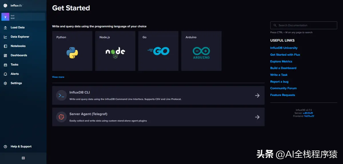 点击 QUICK START 按钮,就可以进入到Influxdb后台管理界面了。