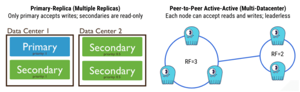 而在支持多数据中心集群的对等系统中,整个集群中的每个节点都可以接受读取或写入负载。显然,这会更方便将工作负载分布到多个地理位置。
