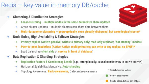 Redis的企业功能可以实现P2P的多活集群。同时,Redis能够自动分片和复制数据。不过,其拓扑感知功能仅限于带有企业特性的机架感知。