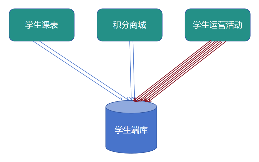 但当时的情况是,学生课表、云服务器提供商积分商城和学生运营活动这三个服务拆出来了,还是共用了一个学生端的数据库。