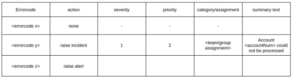 为了让警报能够反应有意义且具有操作性的事件,我们通常需要对它们进行必要的配置。由于组织采用的事件管理系统存在着差异性,因此不同的配置可能会驱动不同类型的后续操作。以下是各种需要配置属性的示例。其错误代码会在整个系统中遵循特定的分类方法。当然,它们也可以按需集中到一个中央的配置管理系统中。