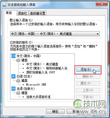 2. 点击设置后会出现这个框框,语输请大家点击“添加”按钮。入法