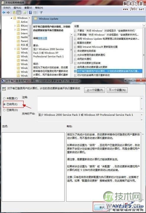 最后进入之后,高防服务器我们找到对于有已登陆用户的计算机,计划的自动更新安装不执行,双击它,选择已启用,点击确定即可完成如下图:
