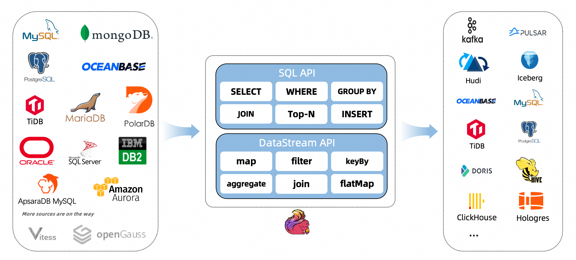 Flink CDC是Apache Flink社区开发的一个CDC工具,能够从多种数据源中捕获增量数据,并将其转换为DataStream流处理引擎能够处理的数据格式。Flink CDC支持的数据源包括MySQL、PostgreSQL、Oracle等多种数据库。