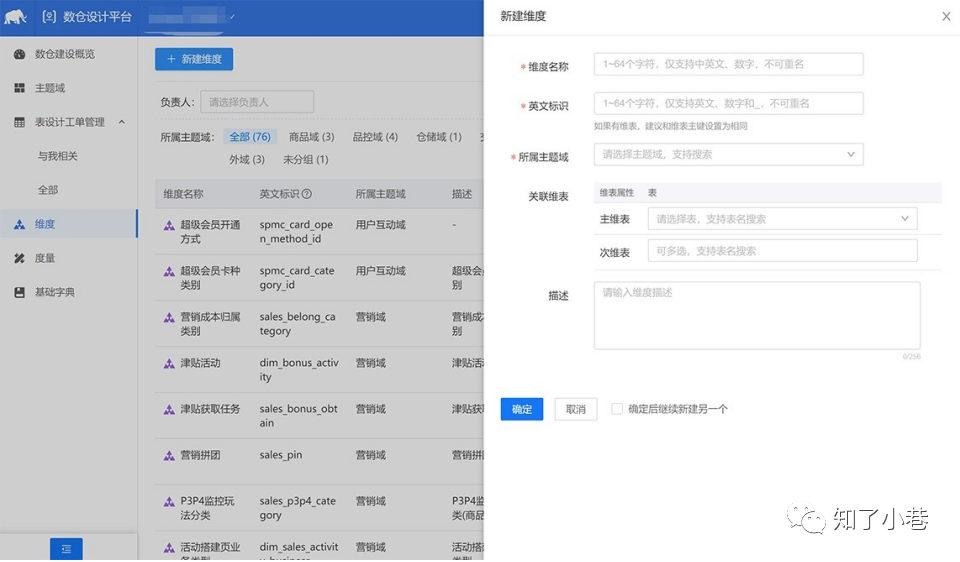 它还提供了维度、度量和字段基础字典的管理,同时具备模型设计审批流程的控制。