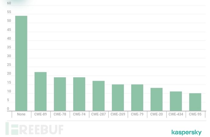 卡巴斯基研究人员还分析了高级持续性威胁(APT)中最常用的漏洞类型。以下排名基于卡巴斯基的遥测、研究和开源数据。