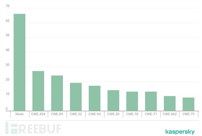 CWE-434:无限制上传危险类型的文件;CWE-89:SQL命令中使用的特殊元素的不当中和(SQL注入);CWE-22:对受限目录的路径名进行不当限制(路径遍历);上述两个最常见类型的列表都表明,绝大多数分类的关键漏洞都已注册为Web应用程序。根据开源信息,Web应用程序中的漏洞确实是服务器租用最关键的,因为Web应用程序包括可以访问敏感数据的软件,例如文件共享系统、控制VPN访问的控制台以及云和物联网系统。