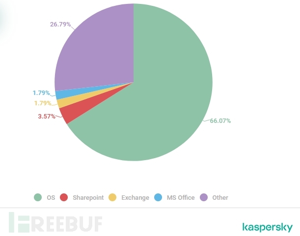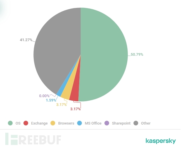 与第一季度相比,第二季度操作系统中漏洞利用的份额有所增加。这是因为研究人员倾向于在夏季网络安全会议之前发布概念验证代码(PoC)。因此,在第二季度发布了大量的操作系统漏洞。此外,在报告期内,Microsoft Sharepoint中漏洞利用的份额有所增加,几乎没有针对浏览器的新漏洞利用。