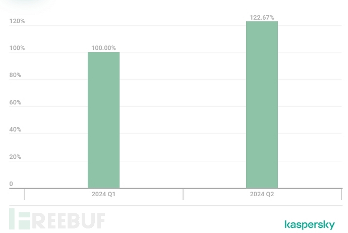 【2024年第一季度和第二季度,在卡巴斯基产品上遭受使用易受攻击的驱动程序攻击的用户数量动态;2024年第一季度的数据为100%】