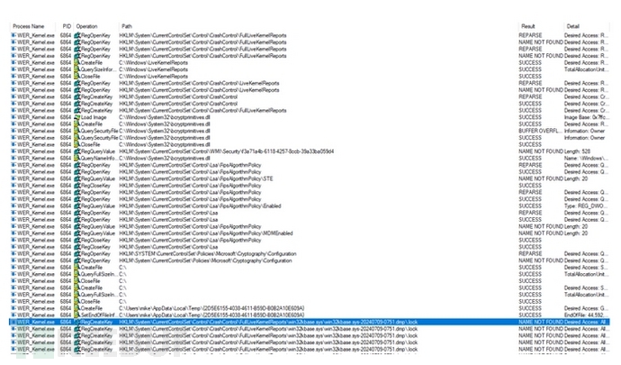 1.CVE-2024-26169(WerKernel.sys)Werkernel.sys是Windows错误报告(WER)子系统的驱动程序,CVE-2024-26169是在调查与勒索软件攻击相关的事件时发现的零日漏洞。这是由werkernel.sys使用null安全描述符引起的,该描述符处理访问级别。这允许任何用户与驱动程序交互,例如,重写注册表项HKLM\Software\Microsoft\Windows NT\CurrentVersion\Image File Execution Options\WerFault.exe的值。此键存储有关负责对Windows中的应用程序进行错误处理的应用程序的数据。