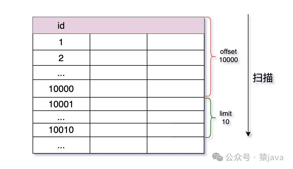 当使用 LIMIT 和 OFFSET 进行分页时,MySQL 必须扫描 OFFSET + LIMIT 行,页问然后丢弃前 OFFSET 行。这意味着随着分页的深入,MySQL 需要扫描的行数会越来越多,导致查询性能下降。