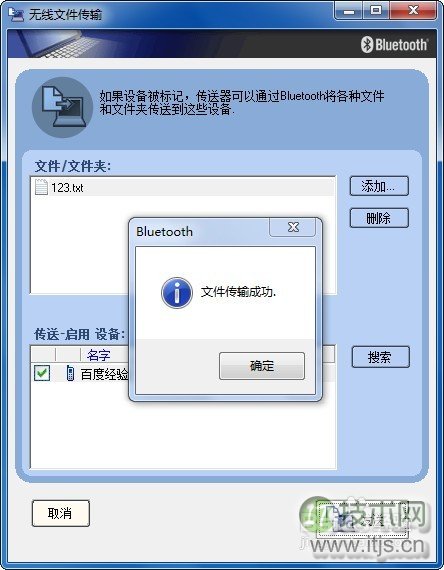 windows 7系统下怎样使用电脑蓝牙给手机发送文件