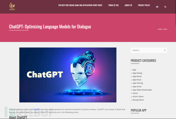 另一组恶意应用程序则是服务器租用通过与 ChatGPT 描述相关的网页进行分发: