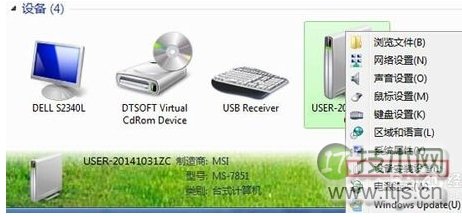 3、在笔记本Windows 7系统xitongcheng.com/Windows 7/notebook/打开的系统窗口上查看到详细信息,将鼠标定位至计算机图标上,选择“设备安全设置”;