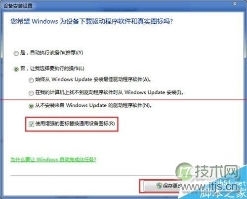 5、选择完了之后,别忘记了按一下保存更改按钮哦。经过上面简单的操作设置,Windows 7就不会自动安装驱动了,想要安装哪一种最新驱动都得看用户的意向了,相信该文教程能为你带来一定帮助。