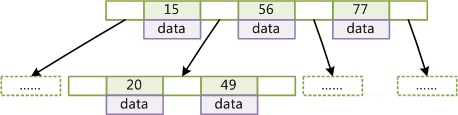 每个节点的指针上限为 2d 而不是 2d+1 。内节点不存储 data ,只存储 key ;叶子节点不存储指针。如下是一个简单的 B+Tree 示意。