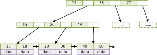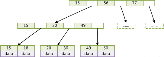 如图所示,在 B+Tree 的每个叶子节点增加一个指向相邻叶子节点的指针,就形成了带有顺序访问指针的 B+Tree 。做这个优化的目的是为了提高区间访问的性能,例如图中如果要查询 key 为从 18 到 49 的所有数据记录,当找到 18 后,只需顺着节点和指针顺序遍历就可以一次性访问到所有数据节点,极大提到了区间查询效率。