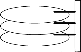 一个磁盘由大小相同且同轴的圆形盘片组成,磁盘可以转动(各个磁盘必须同步转动)。在磁盘的一侧有磁头支架,磁头支架固定了一组磁头,每个磁头负责存取一个磁盘的内容。磁头不能转动,但是可以沿磁盘半径方向运动(实际是斜切向运动),每个磁头同一时刻也必须是同轴的,即从正上方向下看,所有磁头任何时候都是重叠的(不过目前已经有多磁头独立技术,可不受此限制)。下图是磁盘结构的示意图。