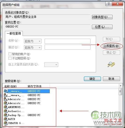 点击“立即查找”,下面的位置就会列出用户列表,找到everyone 用户,双击它。