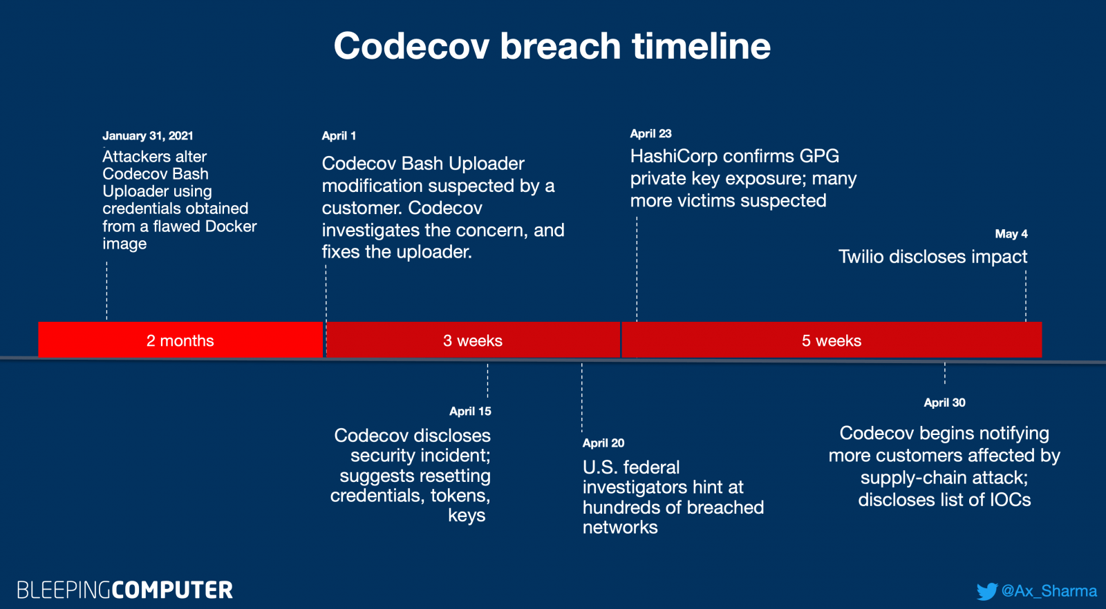 云通信平台Twilio、云服务提供商Confluent和保险公司Coalition也报告称,Codecov攻击者访问了他们的私人存储库。