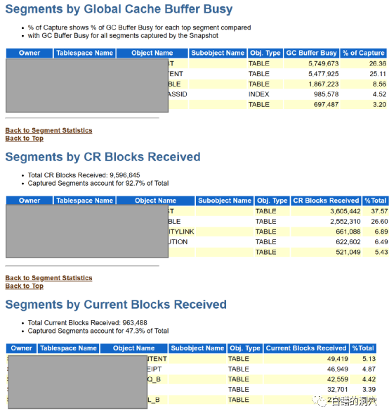 这些TOP SEGMENT相关的SQL语句是我们本次优化的重点,在这里我们发现了一张消息表。有200GB+,其中的数据可以删除清理。如果能够完成这个操作,可以大大降低RAC通讯流量。
